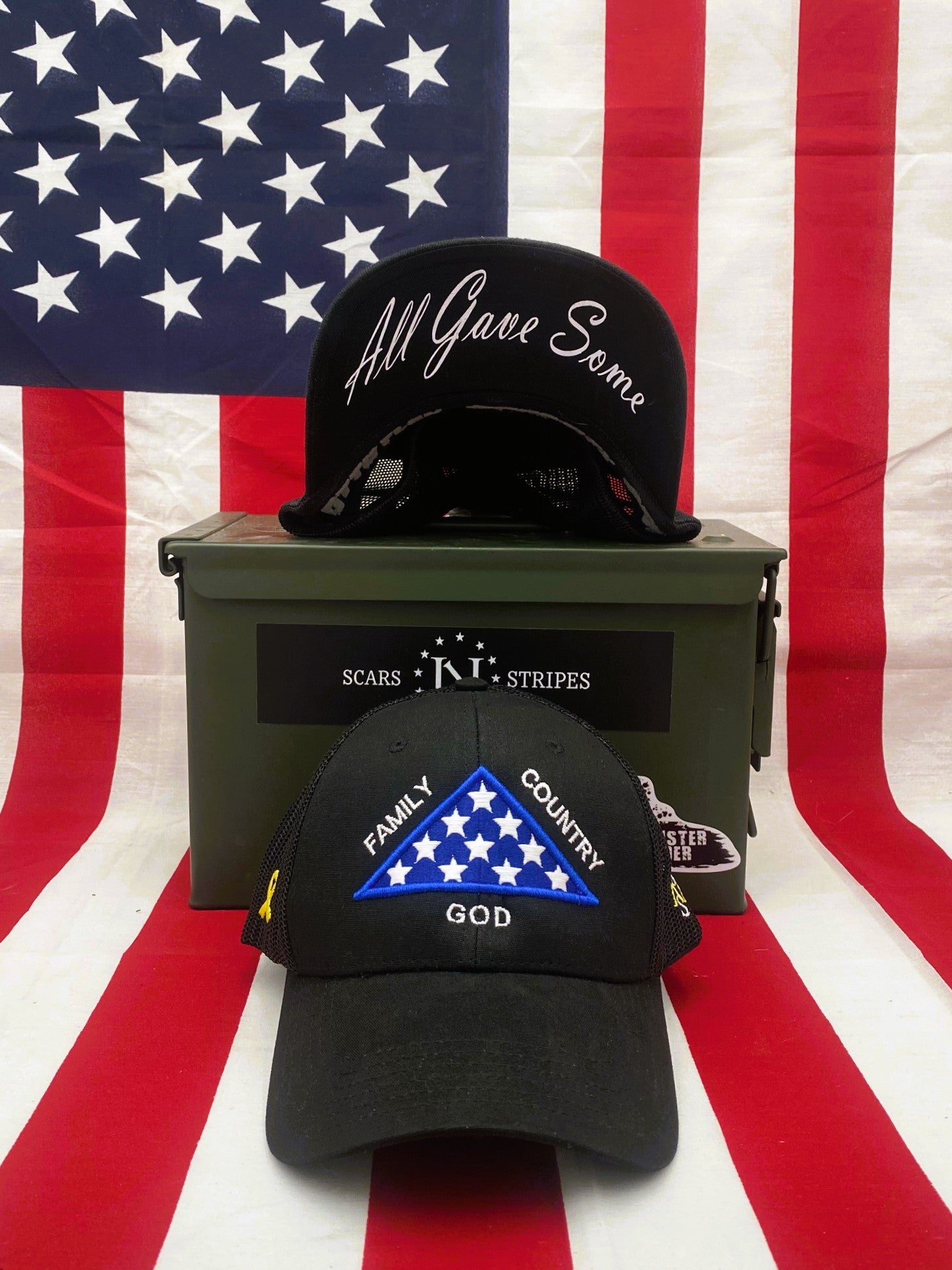 Features the folded flag. Pays homage to those who dedicated themselves to the country. Defines and prioritizes a healthy society. Reminds us all, that no matter their MOS, All Gave Some.
